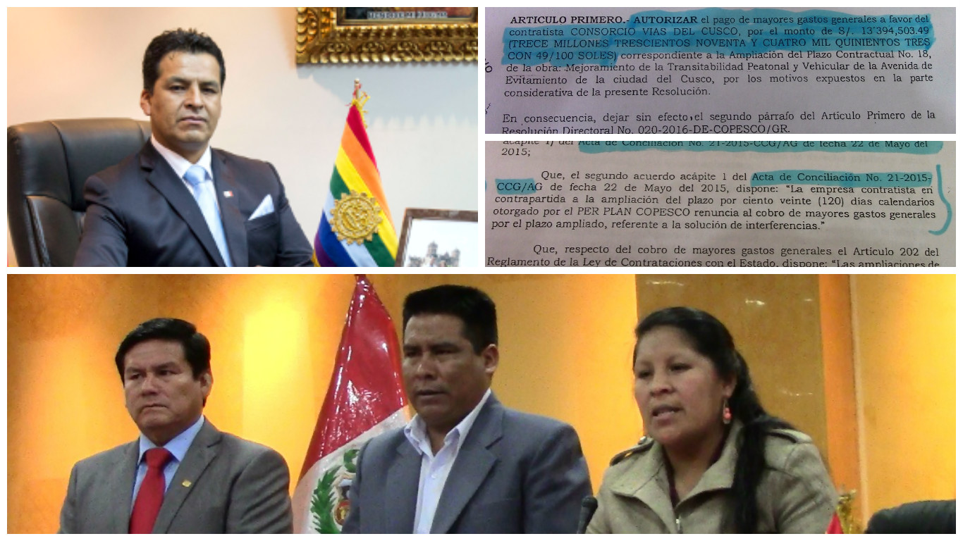 Según la Resolución Directoral Nro. 0126-2016-Copesco/GRC, emitida el 10 de junio del 2016 y firmada por el director ejecutivo del Plan Copesco Cusco, Jorge Luis Alanya se autoriza el pago de mayores gastos generales a favor del contratista Consorcio Vías del Cusco, integrada por Odebrecht, por S/. 13 394,503.49.